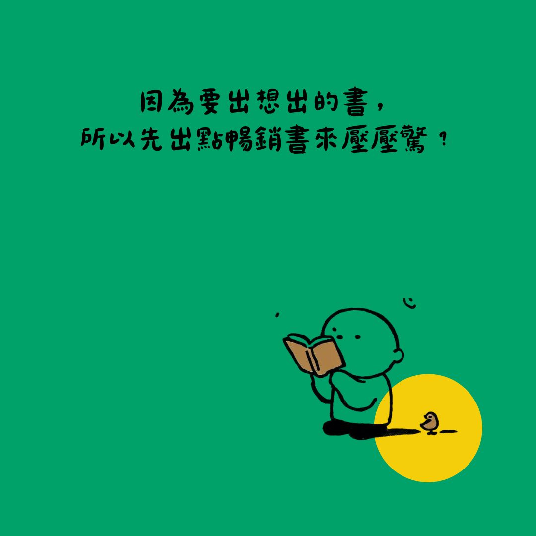 問題就是,如果沒有那一(或多本)暢銷書,要賺到薪水的壓力就會一直在,尷尬的是,其實這個世界大部分的人都不知道哪一本書真的會賣或真的不會賣,你覺得是好書,但一定有些人覺得不好;有些人可以接受中國用語(我其實不太行),但常看字幕組的接受度可能就相對較高。有些人喜歡知識量越大越好,有些人就是想看輕鬆的毒雞湯。